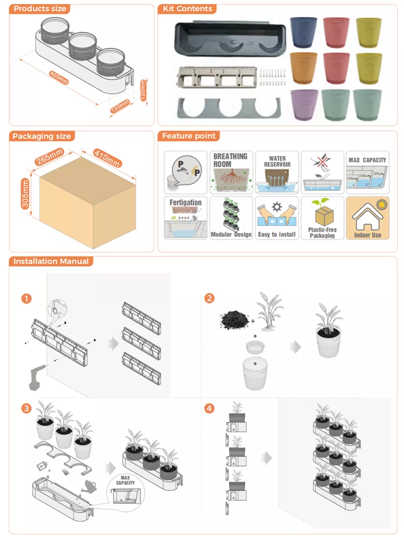 Watex är en professionell tillverkare av blomkrukor i ekologisk trädgårdsskötsel i Kina och en OEM-fabrik för plastvaser för ekologisk trädgårdsskötsel. Vi har 30 års erfarenhet av export av utrikeshandeln. Ekoträdgårdsarbete Vertikal trädgårdsblomkruka Det är ett set med blomkrukor som kan användas för vertikal plantering på väggen. Den färgglada designen gör färgerna mer levande. Vi ser fram emot att bli din långsiktiga partner i Kina.