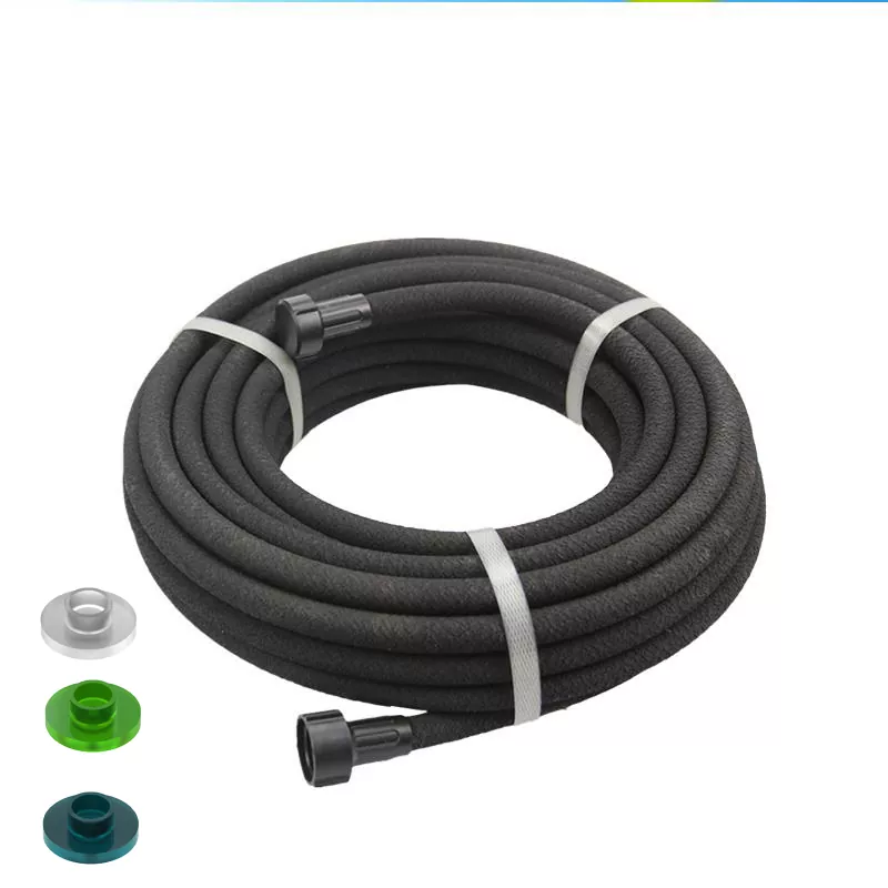 Watex Garden Dripping Hose Series är gjord av slitstarkt återvunnet gummi för att bilda en flexibel slang med inbyggda mikroporer. När det är anslutet till en vattenkälla sipprar vatten långsamt genom kapillärporerna i rörväggen under vattentryck.