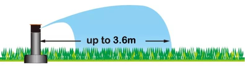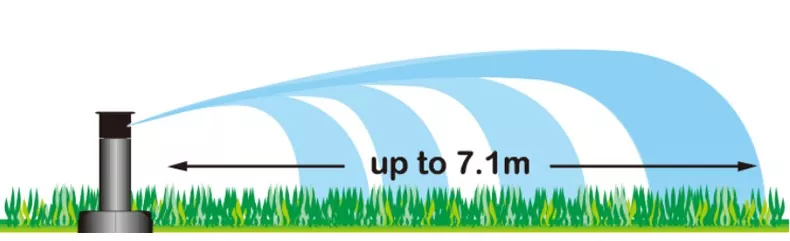Roterande sprinklerhuvuden med en maximal räckvidd på 7,1 meter.