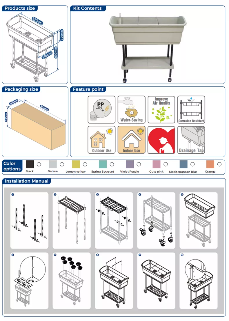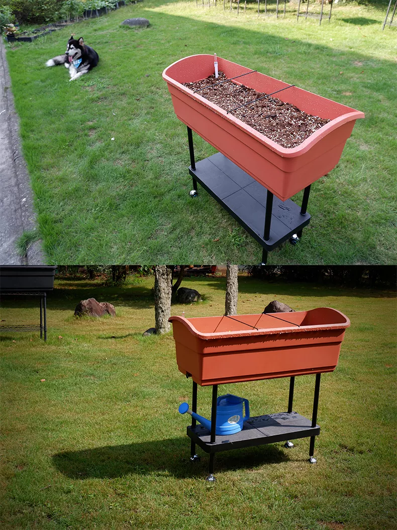 ●Mobil: Skapa en inomhusträdgård på vintrarna och kör ut den på somrarna; håll dig i skugga eller sol enligt dina växter; Hjulen gör trädgårdsarbete till en njutning.