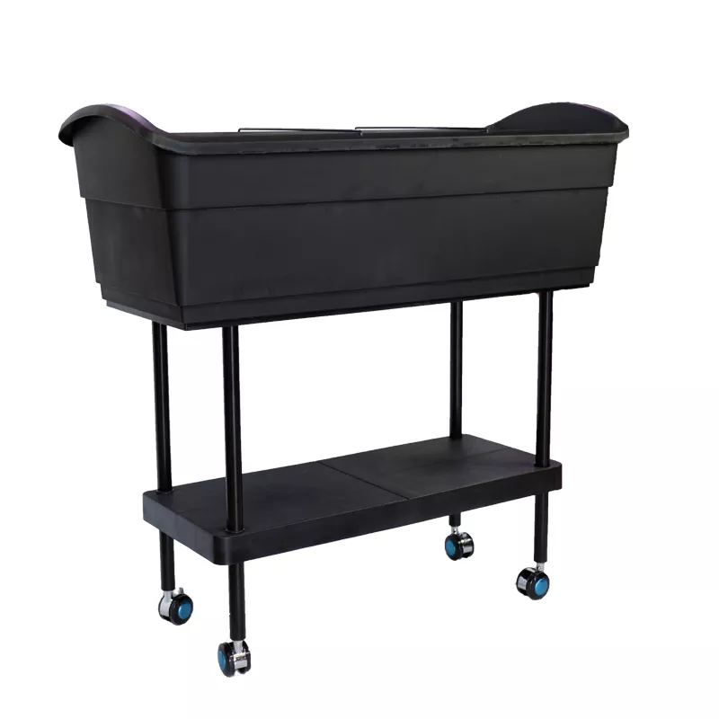 Denna mobila förhöjda trädgårdssäng är speciellt designad för personer som inte kan böja sig ner. Den använder en järnram för att höja blomkrukorna, vilket gör att användarna kan plantera växter stående. Den kommer även med en förvaringslåda i plast där trädgårdsredskap kan förvaras, vilket är mycket användarvänligt för äldre.