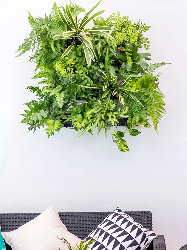 För att säkerställa en magnifik GreenWall ingår ett bevattningssystem som levererar kontrollerade mängder vatten till krukorna, rätt mängd vatten är avgörande för att behålla näringsrika och långlivade växter.