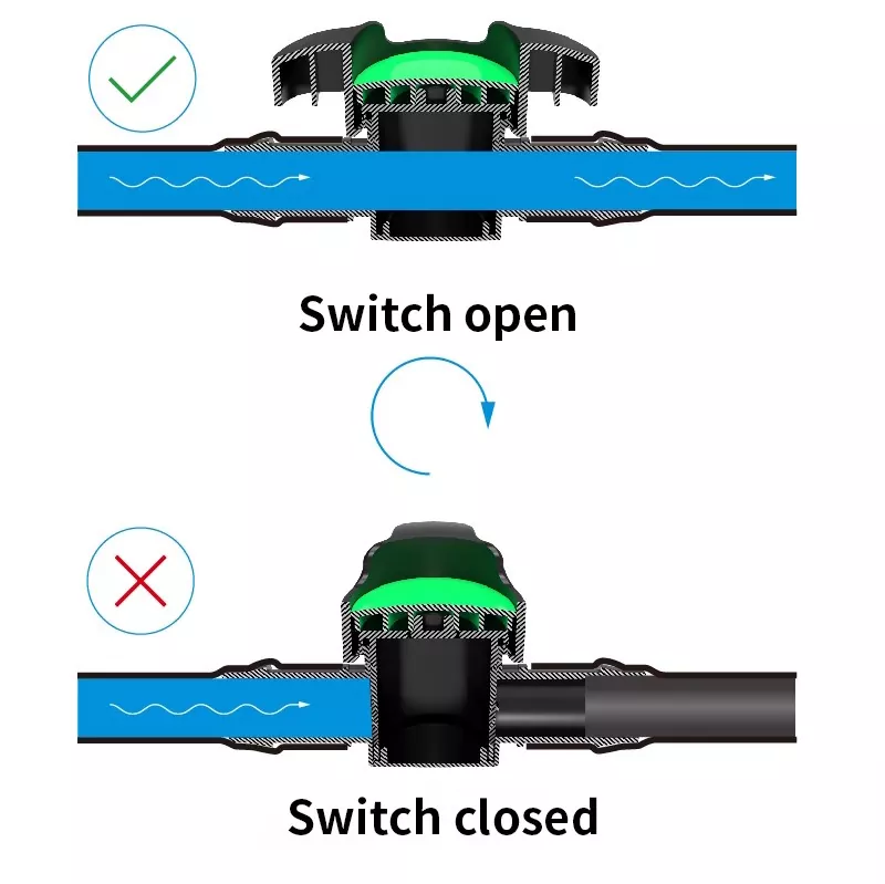 1、On-off Inline-ventilen är gjord av högkvalitativ, höghållfast plast (POM + modifierad PP) med en anti-aging design, vilket säkerställer pålitlig hållbarhet och långvarig prestanda.