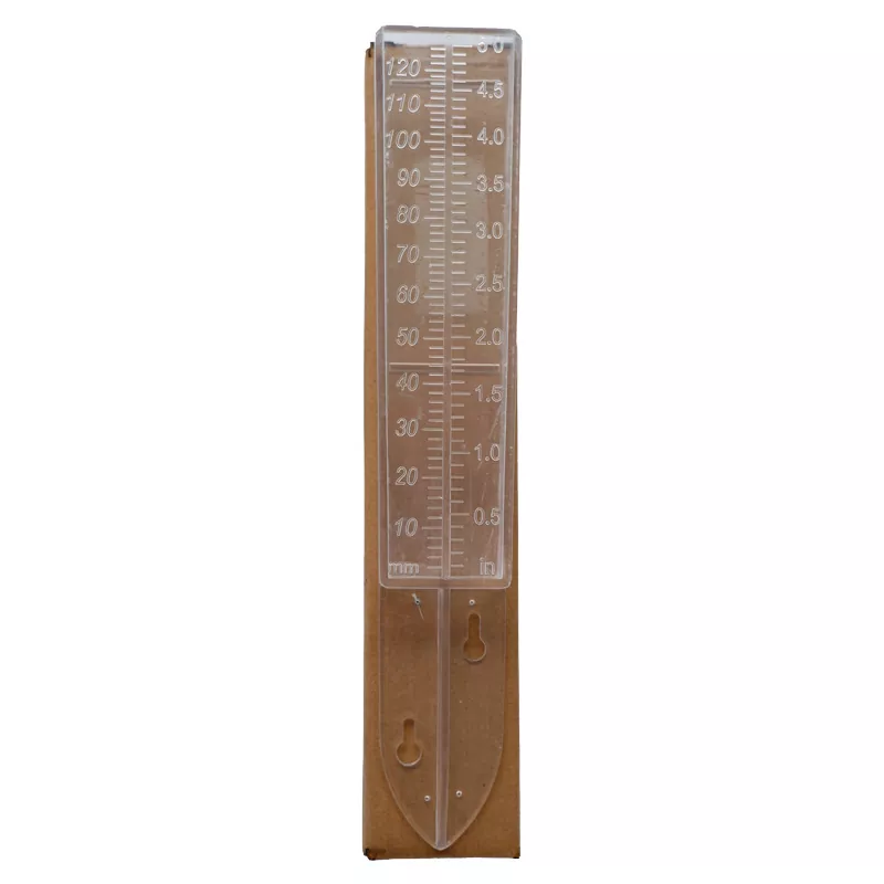 Regnmätaren kan sättas in i jorden i den nedre änden, vilket kräver registrering av nederbördsdata i realtid, med en maximal skalmarkering på 120 mm.