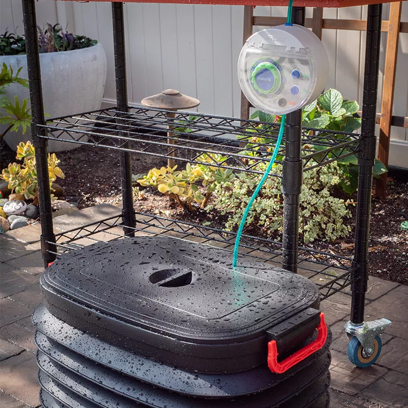 Lös ditt problem med vattenkällan, Smart Watering Aquamatic Drip bevattningssats har en enkel och elegant design med infällbar hinkkropp för enkel förvaring. När vattentanken är utfälld kan den rymma upp till 37 liter. Det förseglade tanklocket håller myggor borta.