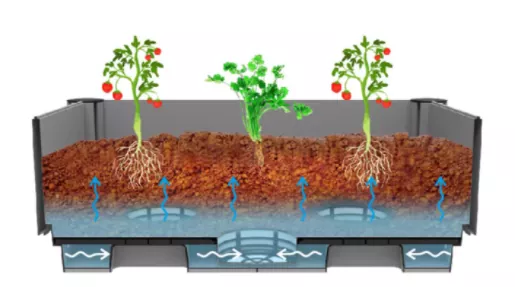 Droppbricka - fångar upp överflödigt vatten Självvattnande kapillärbricka - droppbrickan håller kvar vatten så att växtrötterna kan absorbera vatten vid behov.