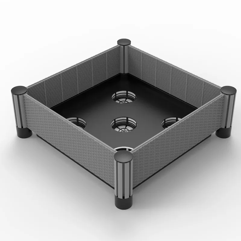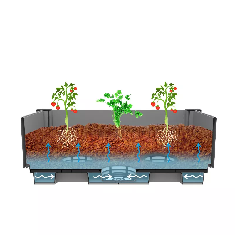 Vattenbricka: Lämplig för inomhus-/utomhusbruk. Samlar upp överflödigt vatten för att bibehålla fukt för rotabsorption samtidigt som ventilationen säkerställs för att förhindra röta. Överskottsvatten dräneras via bräddavlopp.